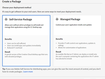 고객 관리자는 VIP(Value Incentive Plan)를 통해 구매한 팀 제품의 배포를 위해 Admin Console에서 사전 구축된 패키지를 선택할 수 있습니다. 이를 통해 VIP 관리자는 팀 또는 엔터프라이즈 제품을 배포할 때 사전 구축된 패키지와 직접 구축한 패키지 중에서 선택할 수 있습니다.